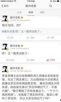 最近,娱乐圈可是风波不断啊!某知名明星被曝出轨,一时间,网友们纷纷热议。有人指责他道德沦丧,有人为他辩解,说这只是误会。不过,不管真相如何,明星们的私生活总是那么引人关注。